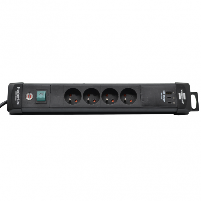 Listwa zasilająca Premium Line w kolorze czarnym posiada 4 gniazda typu E, dwa gniazda USB, kabel o długości 3m i parametrach H05VV-F 3G1,5 :